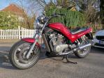 Stahlflex Bremsleitungen, Chromblinker Klein, Edelstahlkühlerblende, Öltemp-Anzeige, Klarglasscheinwerfer, Griffheizung (Oxford), Bugspoiler (Planet Tuning), Motorschutzbügel (Five Stars), Sitzbankbezug (sitzfleisch.eu)